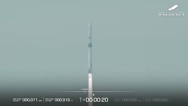 New Glenn lifted off within its launch window from Cape Canaveral, FL on Sunday morning following an approximately 40 minute hold. The ‘Don’t Tell Me the Odds mission was the first re-use of a New Glenn booster by the company. And while the launch and recovery of the booster was nominal, the payload deployment was not.
