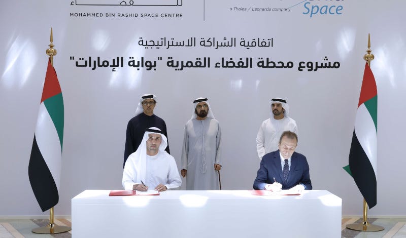 A contract has been signed between the Mohammed Bin Rashid Space Center (MBRSC), the scientific and technological hub driving the UAE’s leadership in space services and exploration, and Thales Alenia Space for the design and development of the Emirates Crew and Science Airlock Module to be docked to Lunar Gateway cislunar space station.