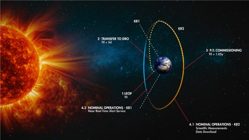“The mission will leverage its unique proximity to the Sun on the sunward side of the DRO to demonstrate miniaturized-instrument technologies that can confirm the impending arrival of solar storms well before they reach Earth.”