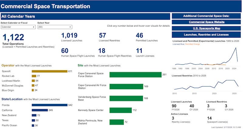 Operators that transitioned legacy licenses by the March 9, 2026, deadline include Blue Origin New Shepard, Firefly Aerospace Alpha, SpaceX Falcon 9 / Falcon Heavy and Dragon, Rocket Lab Electron, and United Launch Alliance Atlas and Vulcan.