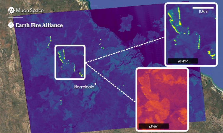 “These first images are a powerful demonstration of what we built FireSat to do,” said Jonny Dyer, CEO of Muon Space. “We’re seeing clear, actionable detection of wildfire activity across multiple regions, which will provide an invaluable tool for first responders. While early detection is important, what’s equally critical is FireSat’s ability to support ongoing fire management by tracking a fire’s progression and behavior.”