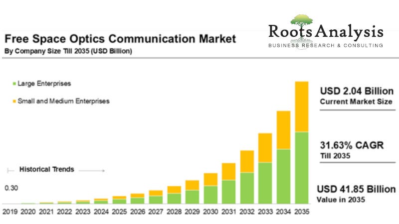 The global free space optics communication market size is estimated to grow from $2.04 billion in 2025, to $41.85 billion by 2035, at a CAGR of 31.63% during the forecast period, till 2035, according to a new report from Roots Analysis offered by ResearchandMarkets.