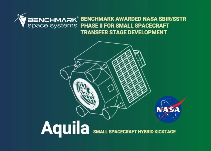 A NASA Phase II Small Business Innovation Research (SBIR) contract has been awarded to Benchmark Space Systems to advance development of our Aquila Small Spacecraft Transfer Stage (SSTS), a low-cost, small spacecraft compatible solution engineered for delivery of payloads to high-energy orbits, including lunar destinations.