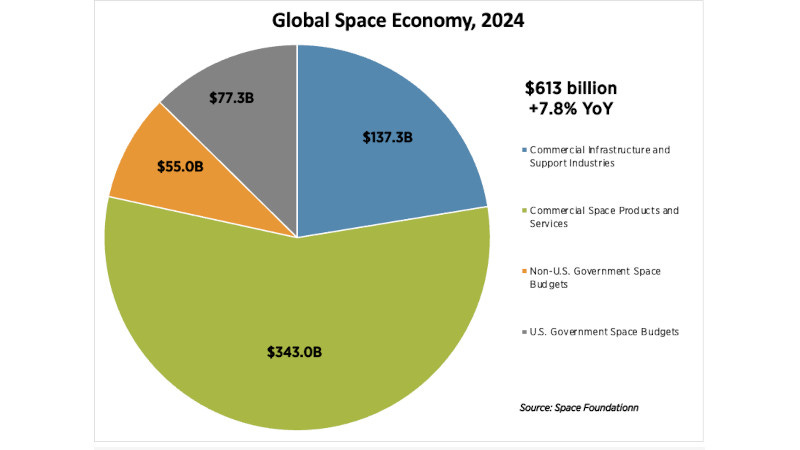 The global space economy reached an unprecedented $613 billion in 2024 reflecting strong 7.8% year-over-year growth, according to The Space Report 2025 Q2 from Space Foundation. The organization says the milestone underscores the vital role space plays in driving economic growth, ensuring national security, and enhancing public safety.