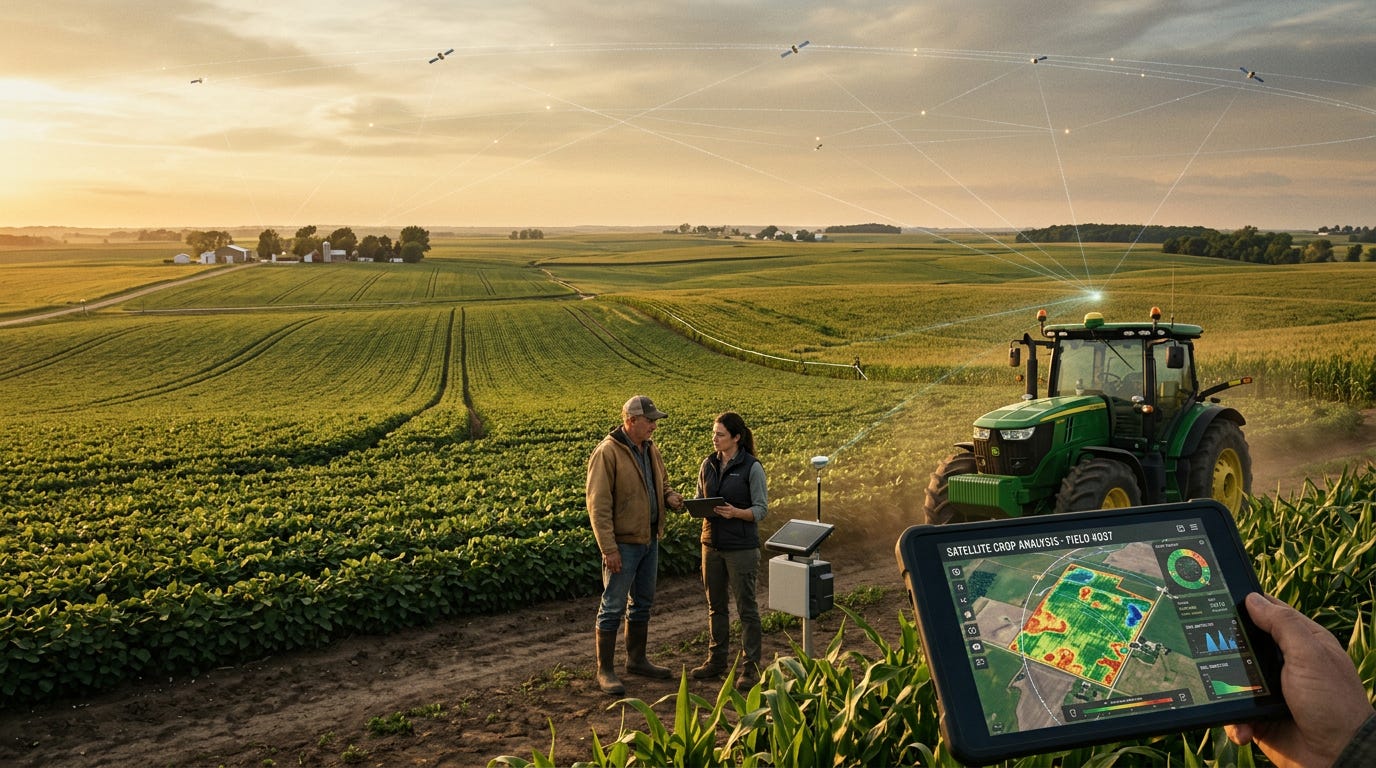 Walk into the operations center of a large-scale row-crop operation in the Midwest today and you will find something that would have been unrecognizable a decade ago: a screen showing near-real-time crop health indices derived from satellite imagery, overlaid on soil moisture maps built from microwave radiometry data, feeding automated variable-rate application decisions for fertilizer and irrigation. The farmer may not know who owns the satellites overhead. The agronomist advising the operation may not know either. The ag-tech platform vendor who assembled the data stack probably has a licensing agreement with one constellation operator and a fallback relationship with a second, if they have a fallback at all.